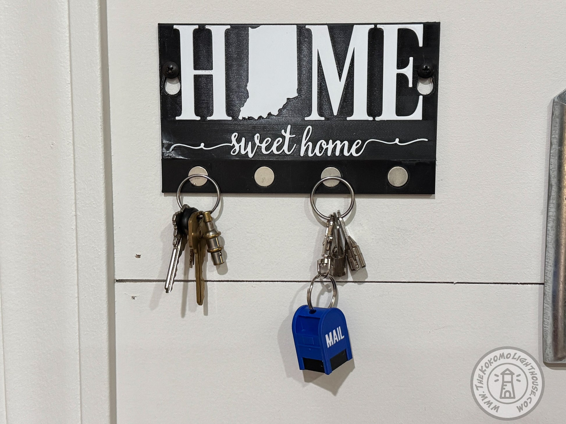 - Design. 3D printed in blue with "Mail" displayed in on the side.