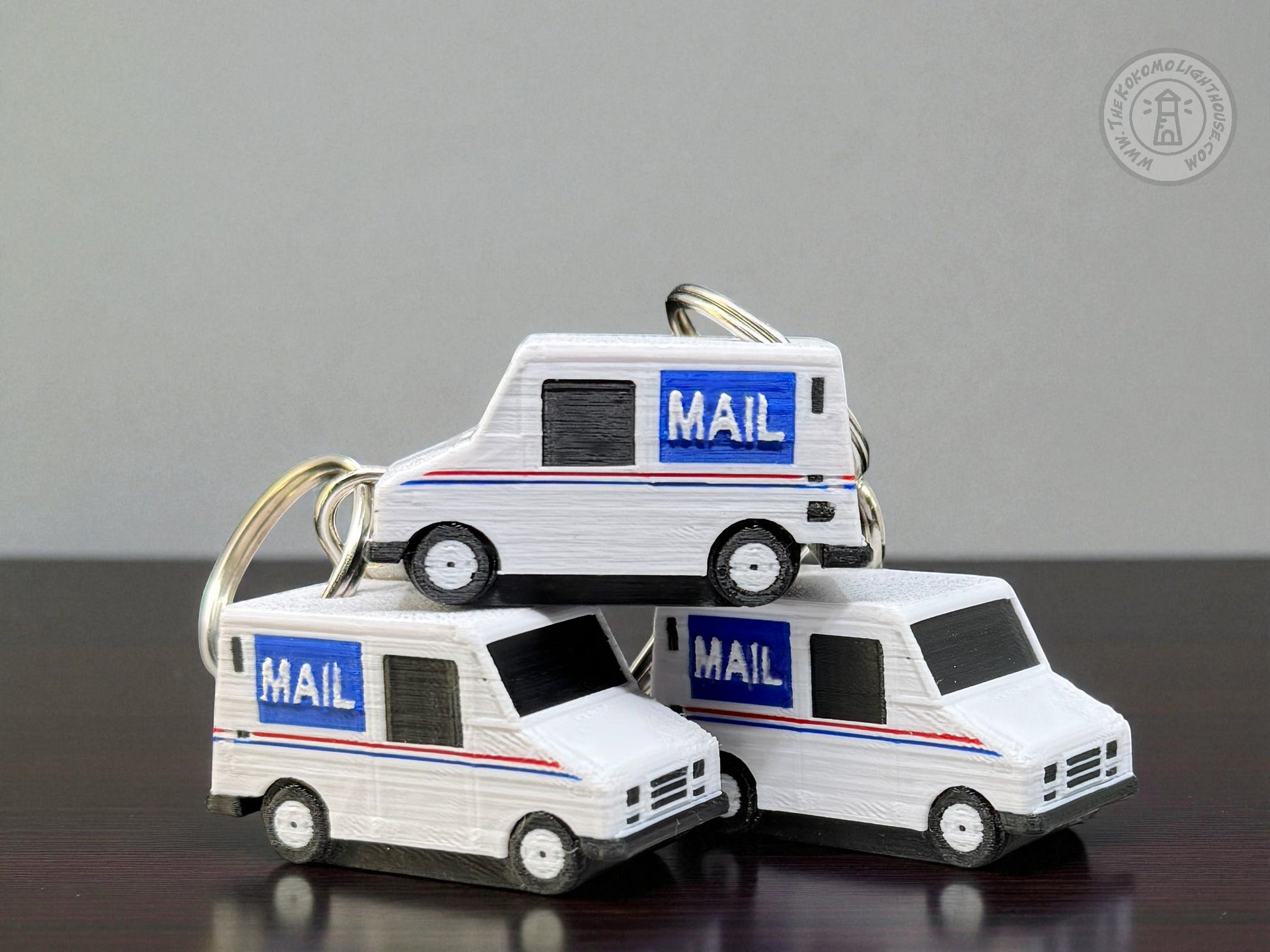 Mini Postal Truck LLV Key Chain - 3D Printed Mail Truck Key Ring with Swivel Hook
